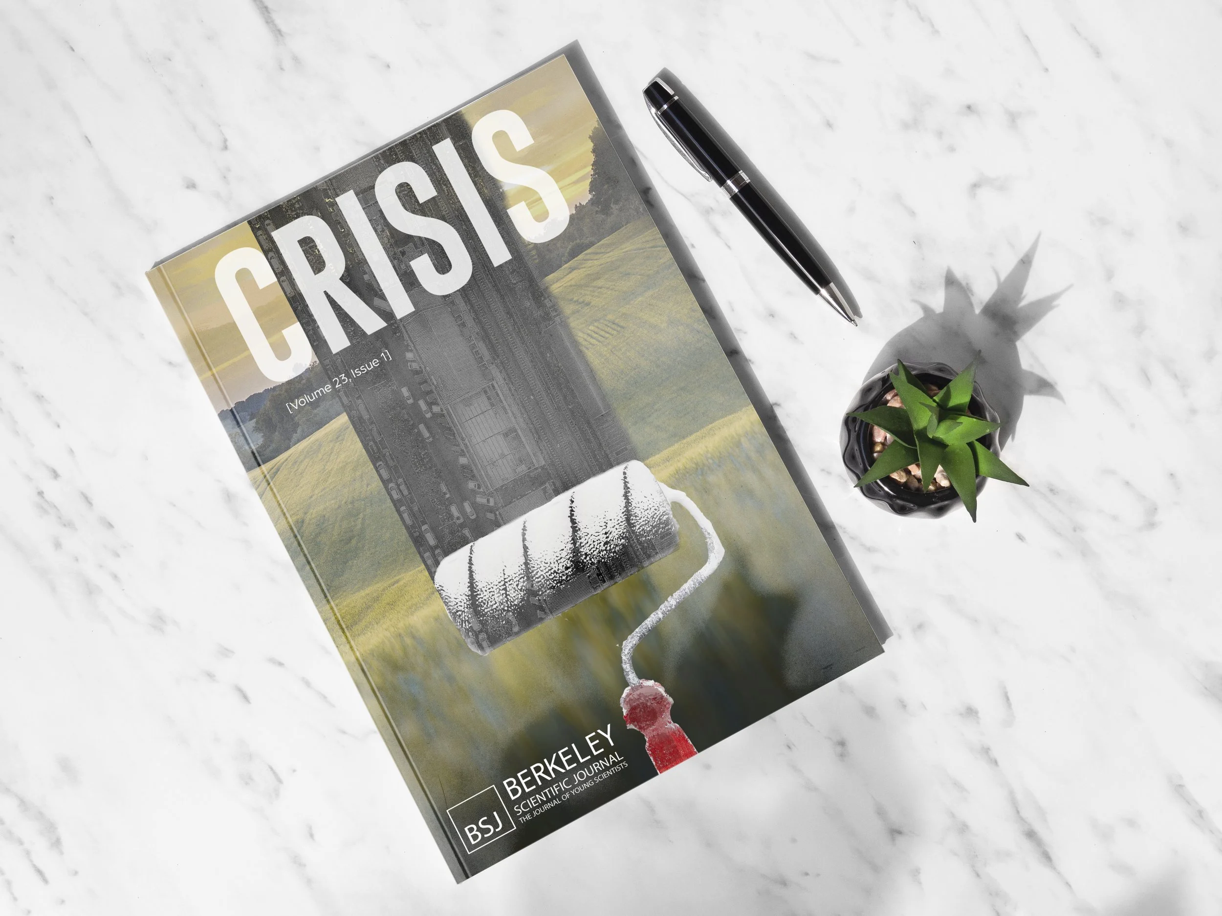 Berkeley Scientific Journal (BSJ) approached Innovative Design with the task of creating a cover design for Crisis, the Fall 2018 issue of their biannual journal. This issue’s theme was the climate crisis and its enduring impacts on various aspects of human life worldwide.